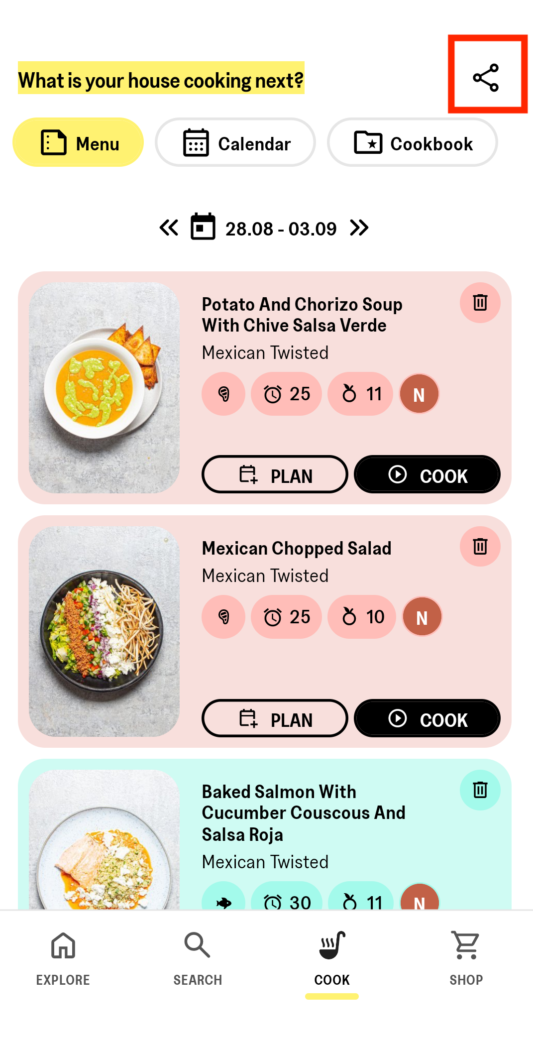 Now you can share/notify your Menu and the Shopping list with the members of your Sidekick Home with ease!