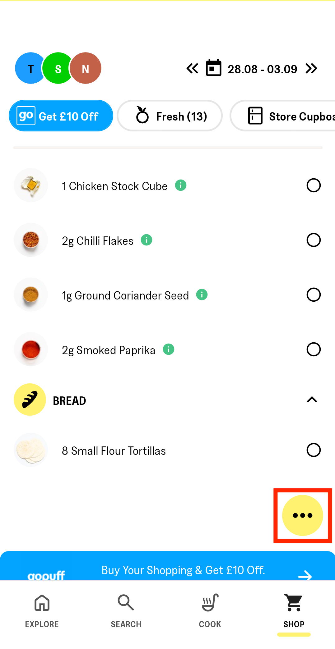3. Click on the 3 dots present at the bottom right corner of the screen just above the Shop icon